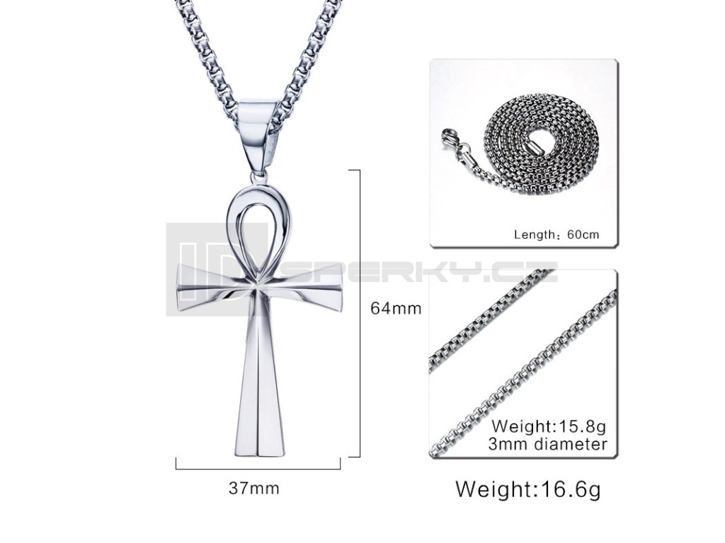 Ocelový přívěsek nilský kříž s řetízkem PN-646