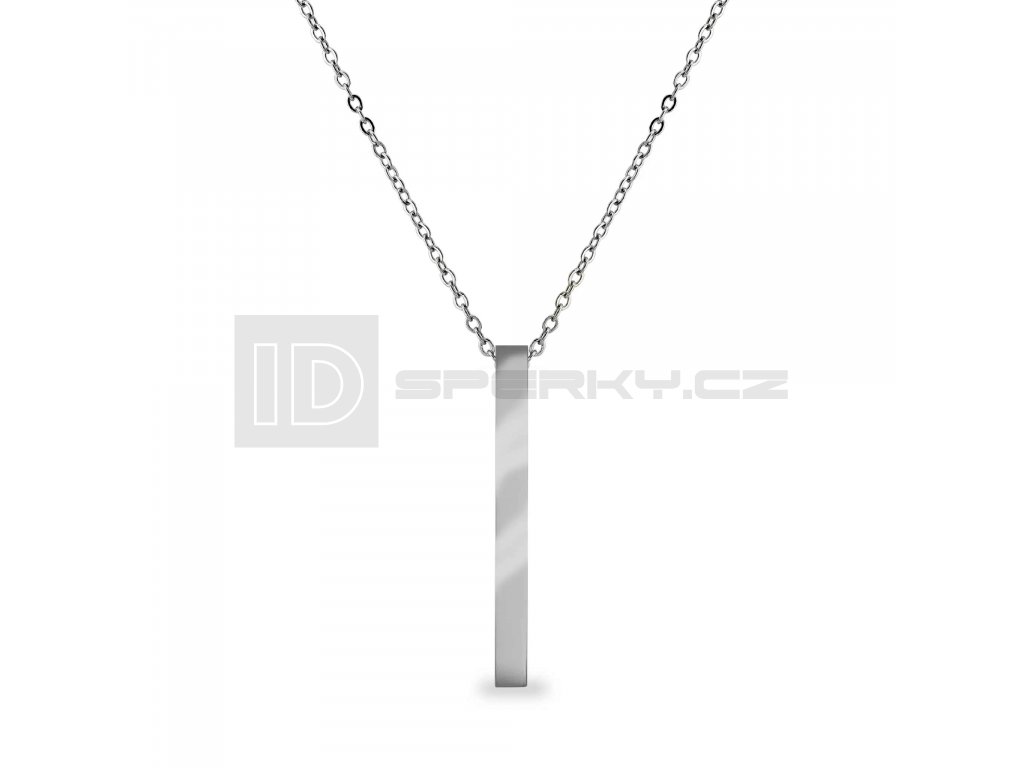 Ocelový přívěsek se řetízkem z chirurgické antialergické oceli 316L. Vhodný na gravírovaní krátkého textu, loga. Rozměr přívěsku 4x40mm, délka řetízku 45cm.