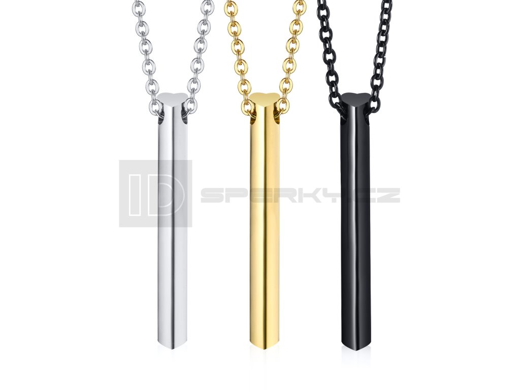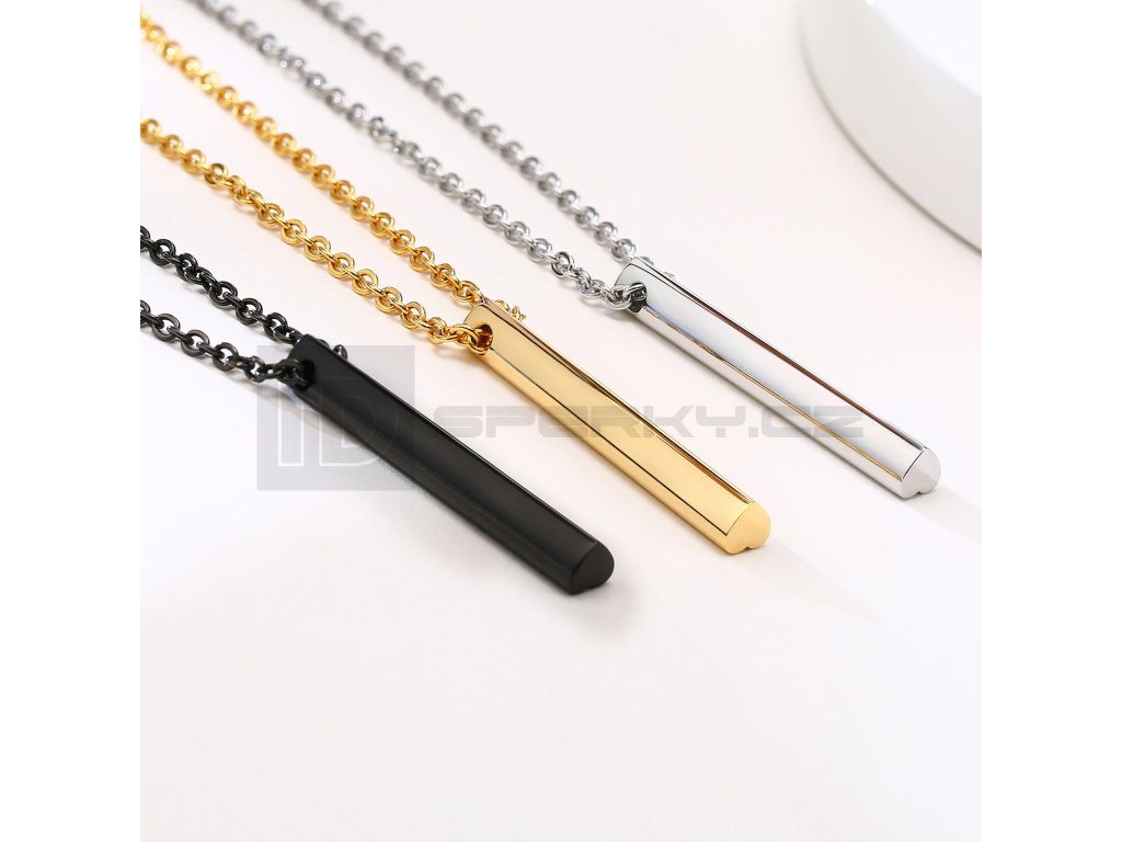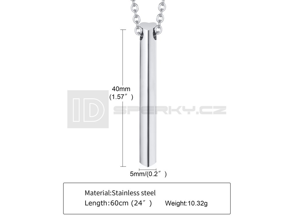 Ocelový přívěsek s řetízkem z chirurgické antialergické oceli 316L. Vhodný na gravírovaní drobného textu. Rozměr přívěsku 5x40mm, délka řetízku 60cm.