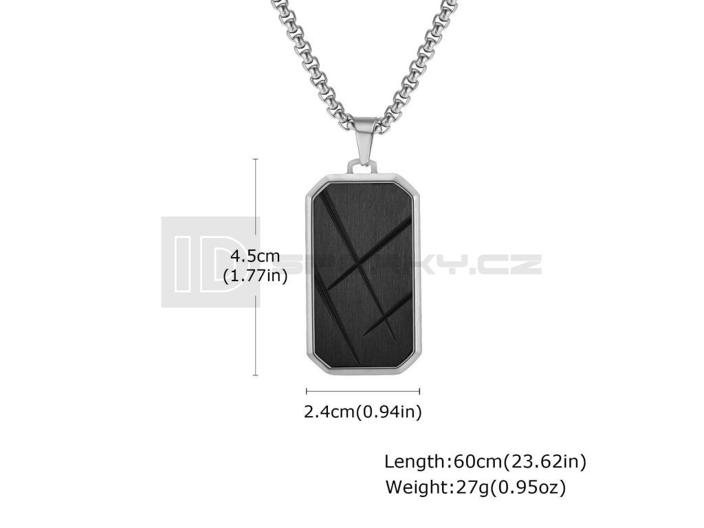 Ocelový přívěsek s řetízkem z chirurgické antialergické oceli 316L. Vhodný na gravírovaní textu, loga. Rozměr přívěsku 24x45mm, délka řetízku 60cm.