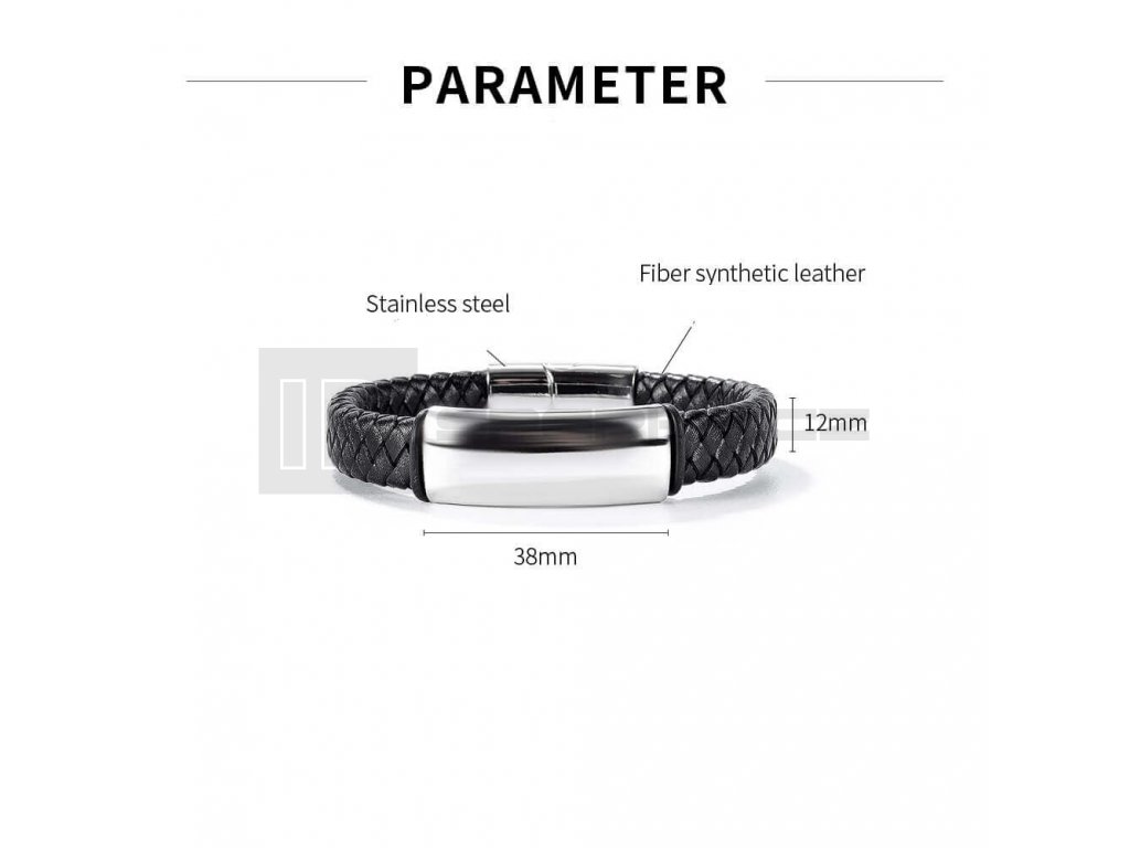 Kožený náramek se sponou s chirurgické antialergické oceli 316L. Vhodný na gravírovaní textu, loga. Šířka náramku 12mm, délka 21,5cm. Úprava délky- zkrácení za poplatek 99,-.