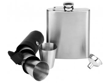 Leštěná nerezová ocel. Obsah 180ml. 95x108x25mm. Součástí balení dárková krabička se sametem.