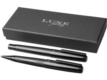 Elegantní sada kovového kuličkového pera a rolleru se vzorovaným tělem. V černé dárkové krabičce, s modrou náplní. Značkový produkt André Philippe. Cena s gravírováním je za celou sadu.