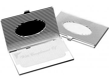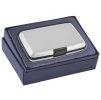 Hliníkové pouzdro na vizitky s vnitřním organizérem. Vhodné na gravírování textu nebo loga. Součástí balení je dárkový box.