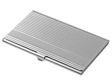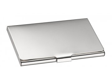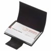 Ocel kombinovaná s černou syntetickou kůží na magnetickou sponu. Vizitkář vhodný na gravírování textu nebo loga.